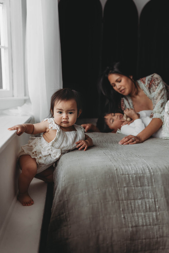 With soft, glowing light and a thoughtfully curated space, it provides the perfect backdrop for capturing genuine, intimate moments—whether you’re celebrating a growing family, welcoming a newborn, honoring motherhood, or marking life’s meaningful milestones. Each session is crafted to feel comfortable and authentic, allowing your story to unfold naturally in a setting that feels like home.